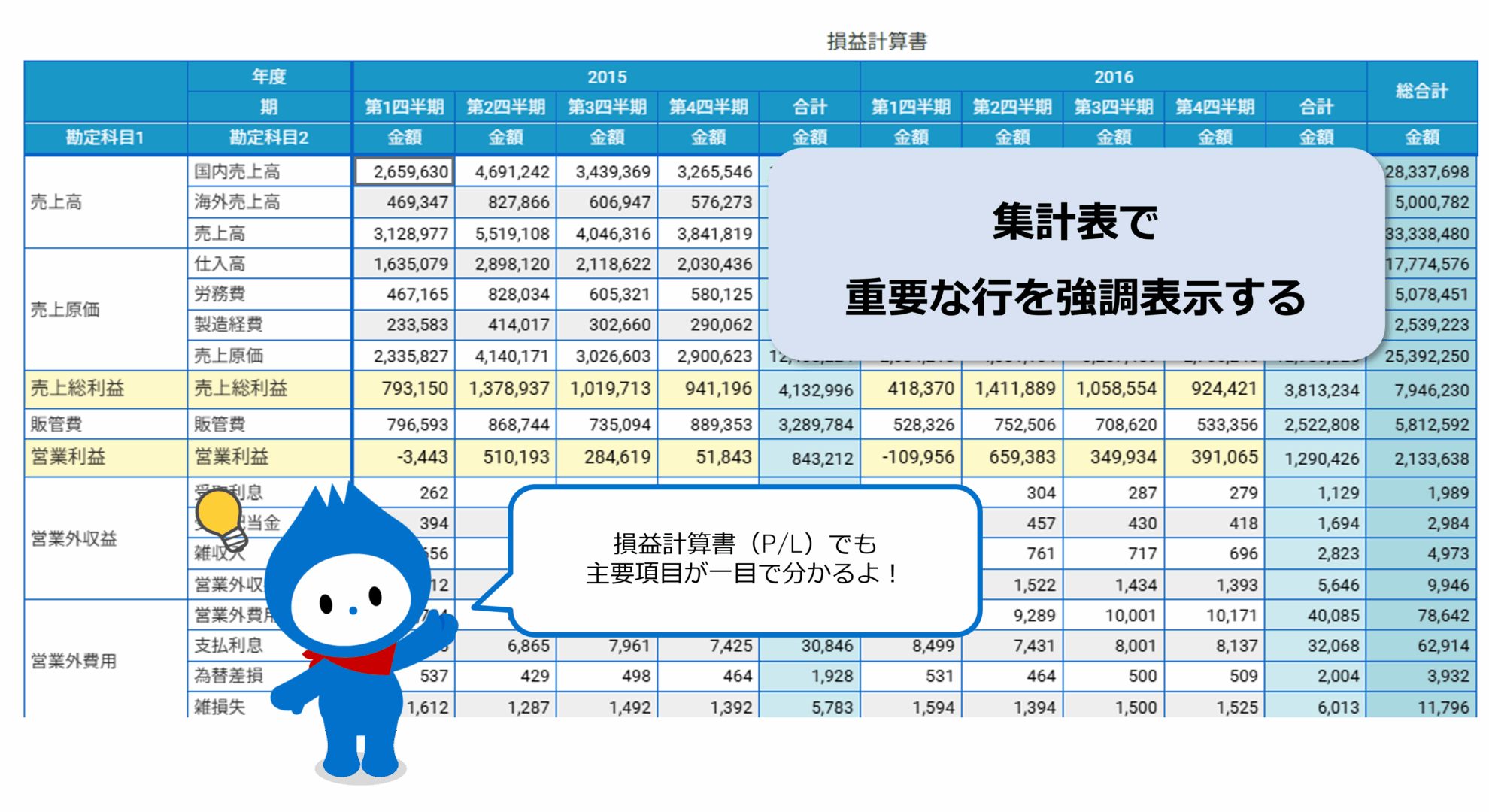 集計表のスタイルで重要な行を強調表示する方法 ― 損益計算書(P/L)を見や…