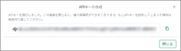 ※この画面を閉じると、発行されたAPIキーは再表示できません。