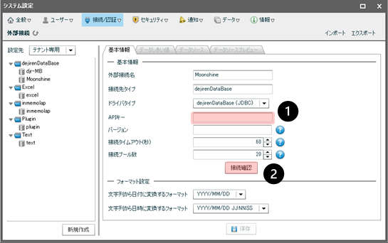 MotionBoard側でデータソース設定を行うために、システム設定権限を有するアカウントが必要です。