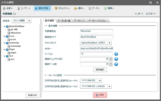 ① [ APIキー ] 入力欄に、dejiren で発行した API キーの文字列を転記し、