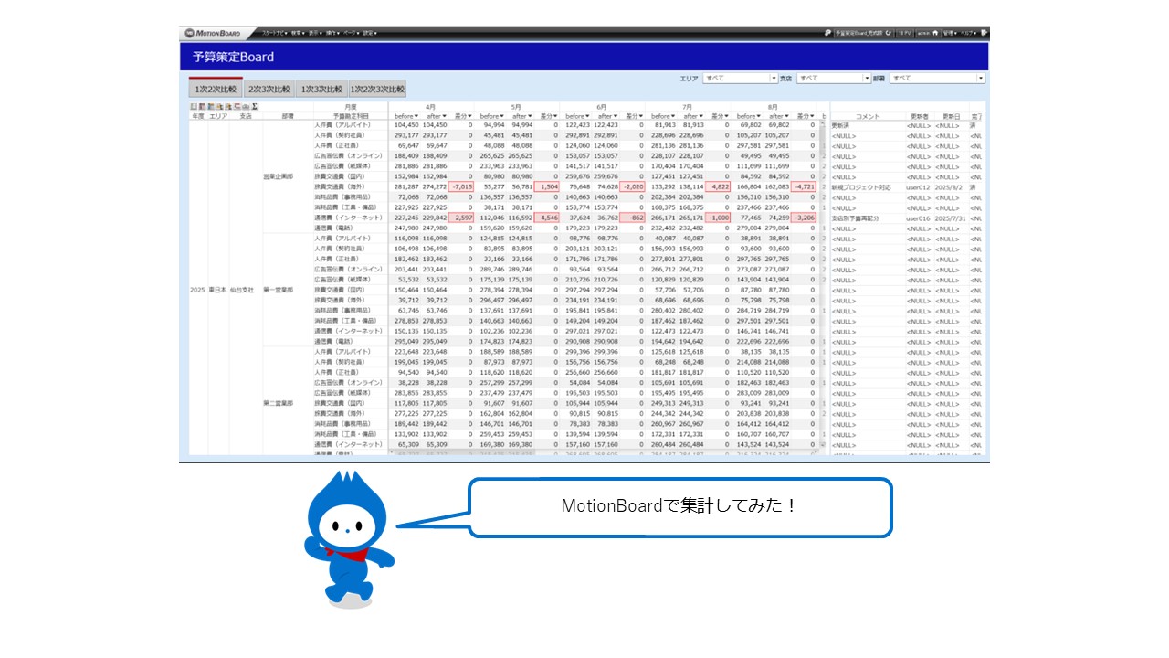また、修正前のデータを別テーブルで残しておくことでDatalizerの集計の機能やMotionBoardを使って比較をすることも可能ですのでそちらも併せてぜひご活用ください。
