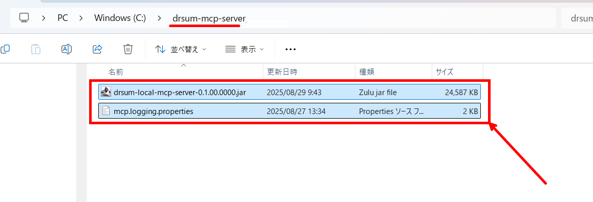 最後に"drsum-local-mcp-server-0.1.00.0000.jar"
