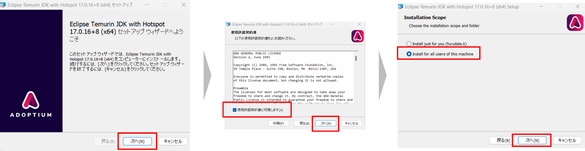インストールスコープは[Install for all users of this machine]を選択してください。