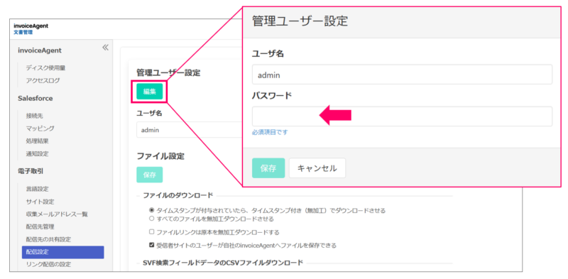 invoiceAgentマニュアル:クラウド環境設定の「管理ユーザー」を設定する |