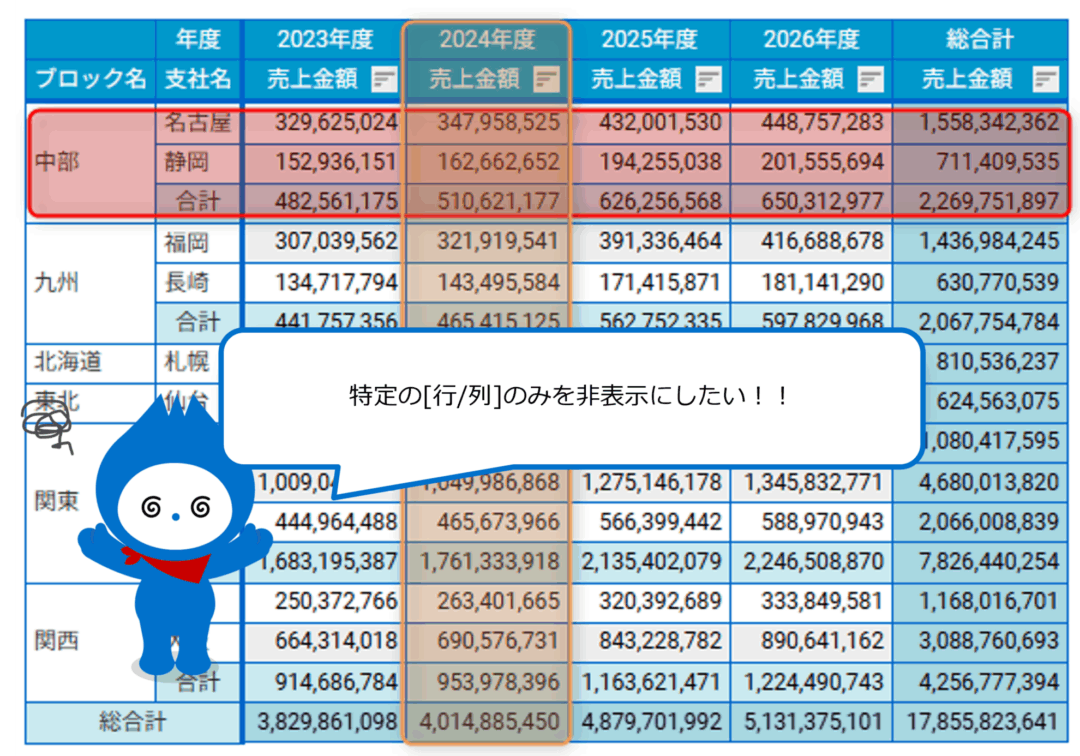 集計表チャートで特定の行や列などを強調表示する方法