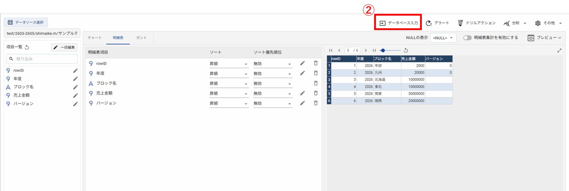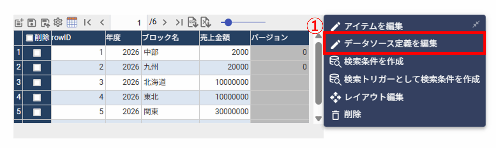 ① 明細表をクリックし、[データソース定義を編集]を開きます。