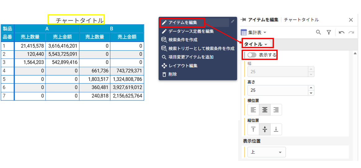 1. 集計表をクリックし、「アイテムを編集」を選択します。