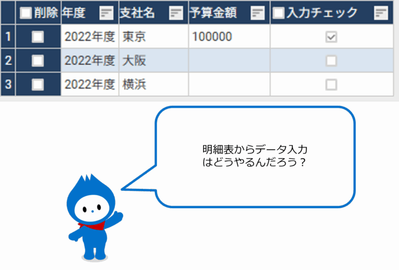 MotionBoard re:Actでは明細表からデータの入力が可能になっており、簡単な設定で値を直接入力したり、チェックボックス等から入力をする設定を行うことが可能です。