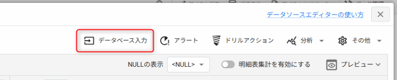 ①画面左上の[データベース入力を許可する]のチェックを付けます。