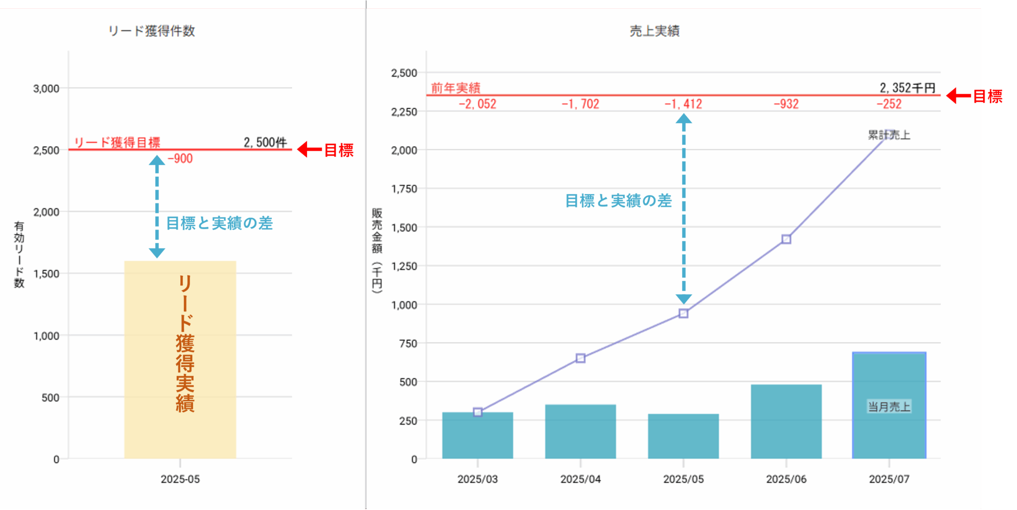 グラフやチャートを使って営業実績やマーケティング指標を可視化する際、 「目標に対して今どの位置にいるのか」をひと目で把握したいと感じることはありませんか。