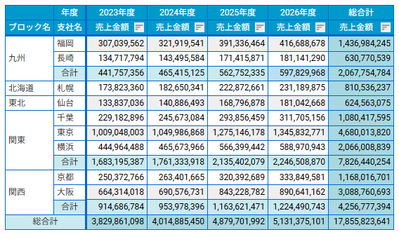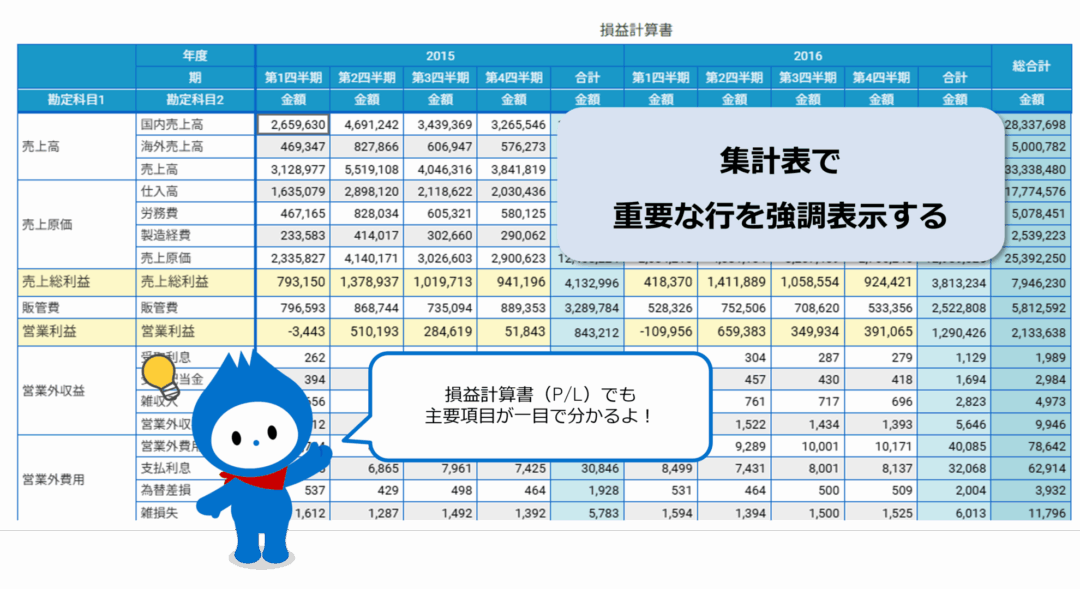 例えば、「特定の支店名の行だけ非表示にしたい」「特定の年の列だけを非表示にしたい」といった要件は集計表の[スタイル設定]を使用して対応します。