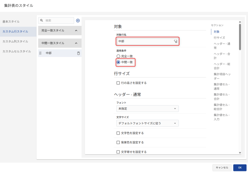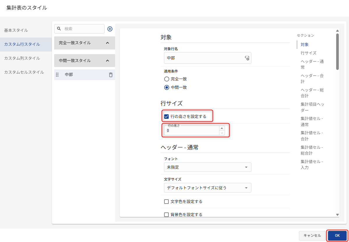 意図しない行や列が非表示にならないよう、[適用条件]や[スタイル適用優先順序]の設定には注意してください。