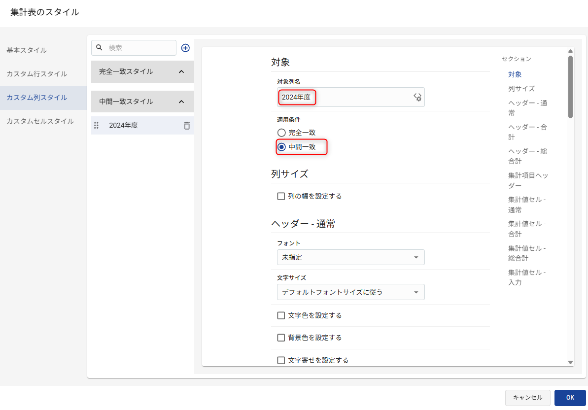 集計表の[スタイル設定]では、非表示以外にも文字色や文字サイズなどの変更が可能です。