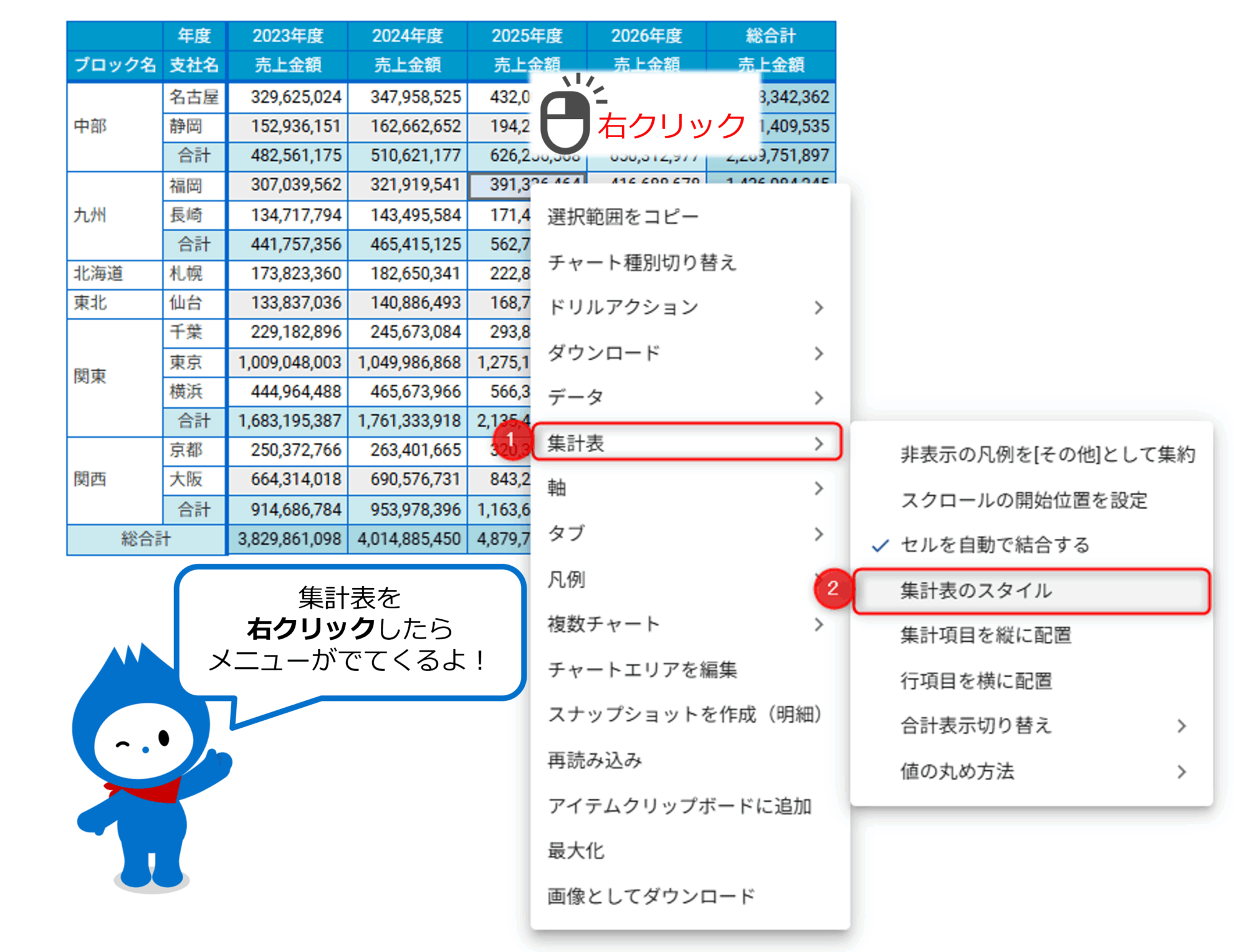 集計表を右クリックし、[集計表のスタイル]を開いたら