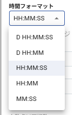 「MM:SS」や「HH:MM:SS」、「D HH:MM:SS」など表示フォーマットを指定できます。