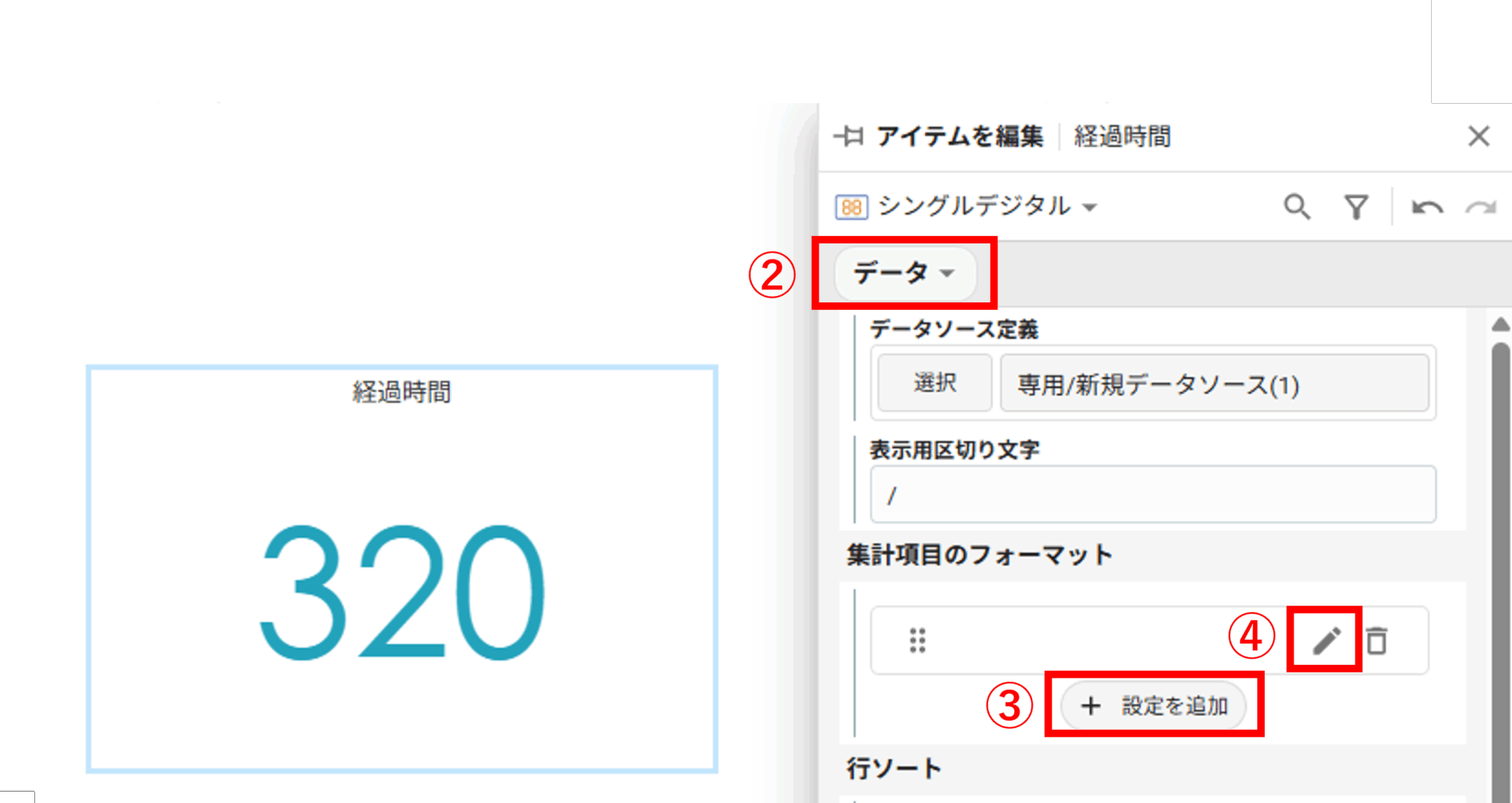④設定欄が追加されたら、鉛筆アイコンの[集計項目のフォーマット]編集ボタンをクリックします。