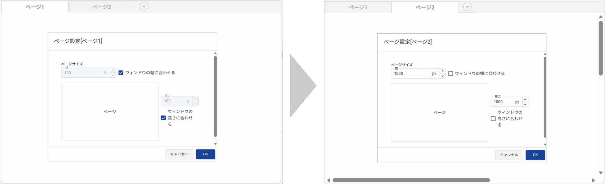 re:Actでは、ページサイズの設定によってスクロールの挙動が決まります。