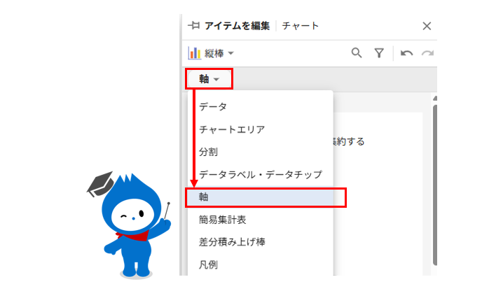プルダウンから[軸]を選択します。