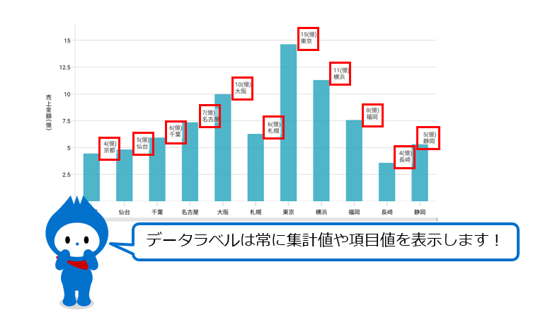 他にもデータチップやデータラベルを表示する方法もございます。