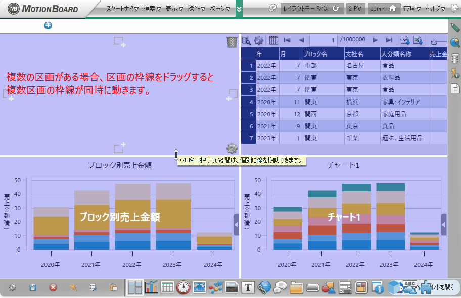 複数の区画がある場合、区画の枠線をドラッグすると複数区画の枠線が同時に動きます。複数区画のバランスを一度に揃えたいときには便利ですが、逆に特定の区画のみ調整したいときに困りますよね。