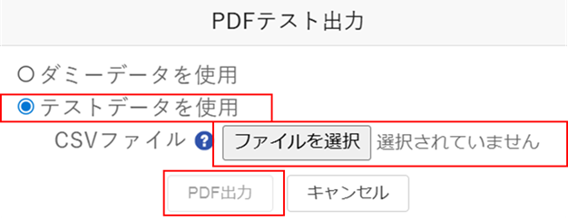 テスト出力では、出力データ用のCSVを作成し、そのデータを元に出力を行います。
