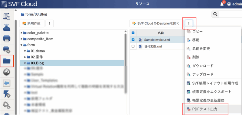帳票設計後、すぐに出力確認を行いたい場合は、SVF Cloud Managerの「テスト出力」機能が便利です。